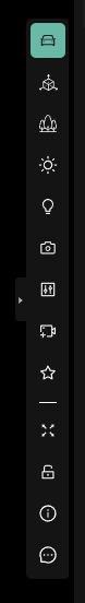 - Reveals 2 icons to the right: one for Exterior camera presets and another for Interior camera presets.