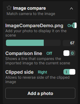 Image compare loads a user supplied reference image into the viewport to make aligning your camera to the reference easier.