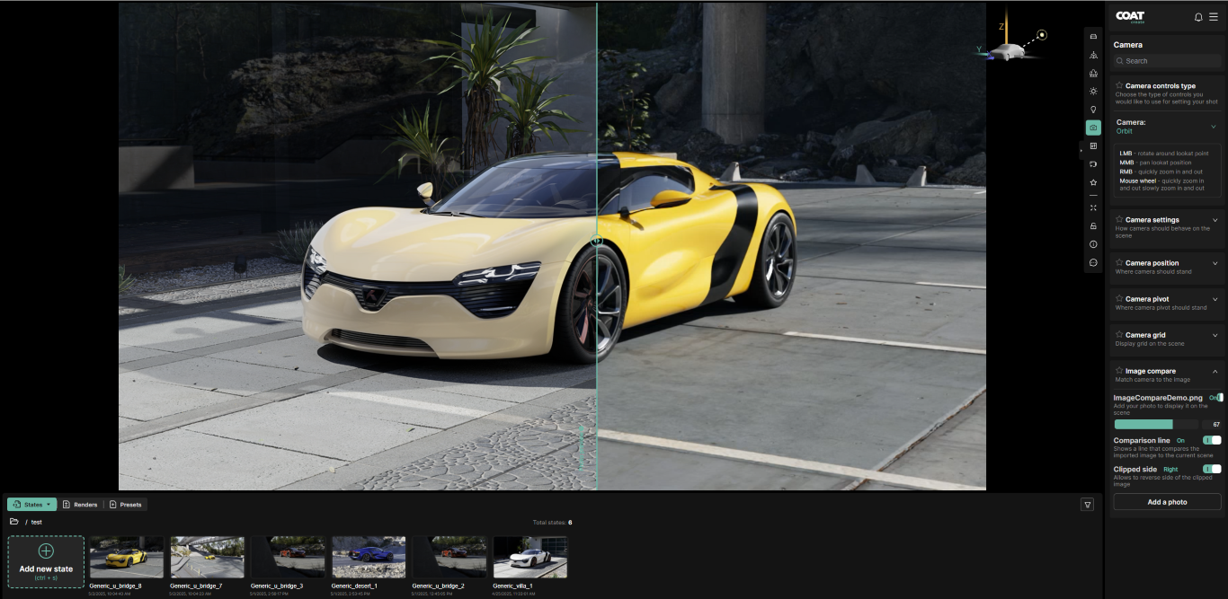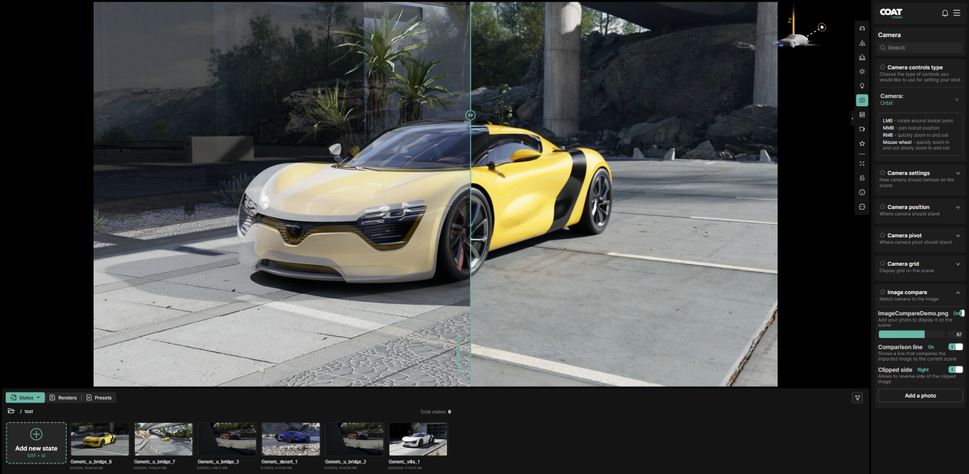 Comparison line - Turn on a line to split the image vertically between the image and the COATcreate viewport.