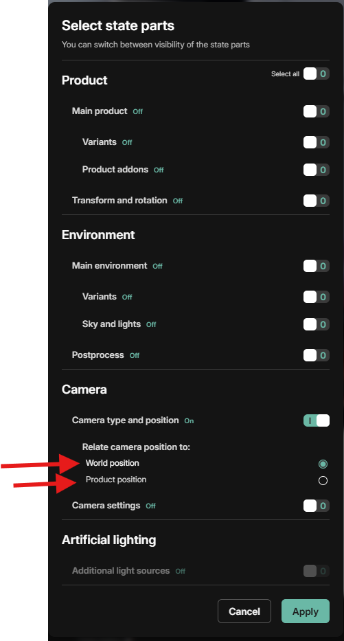 Apply State Parts Camera Options