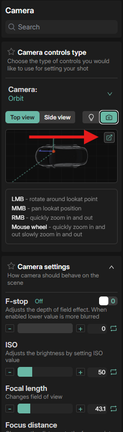 - Focus Distance Selector - Turn this on to lock the camera and click in the viewport to select your focus distance.