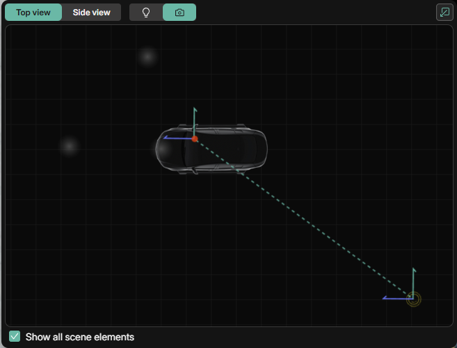 Checking the Show all scene elements box in the lower left corner will display both the Camera and any Custom Lights