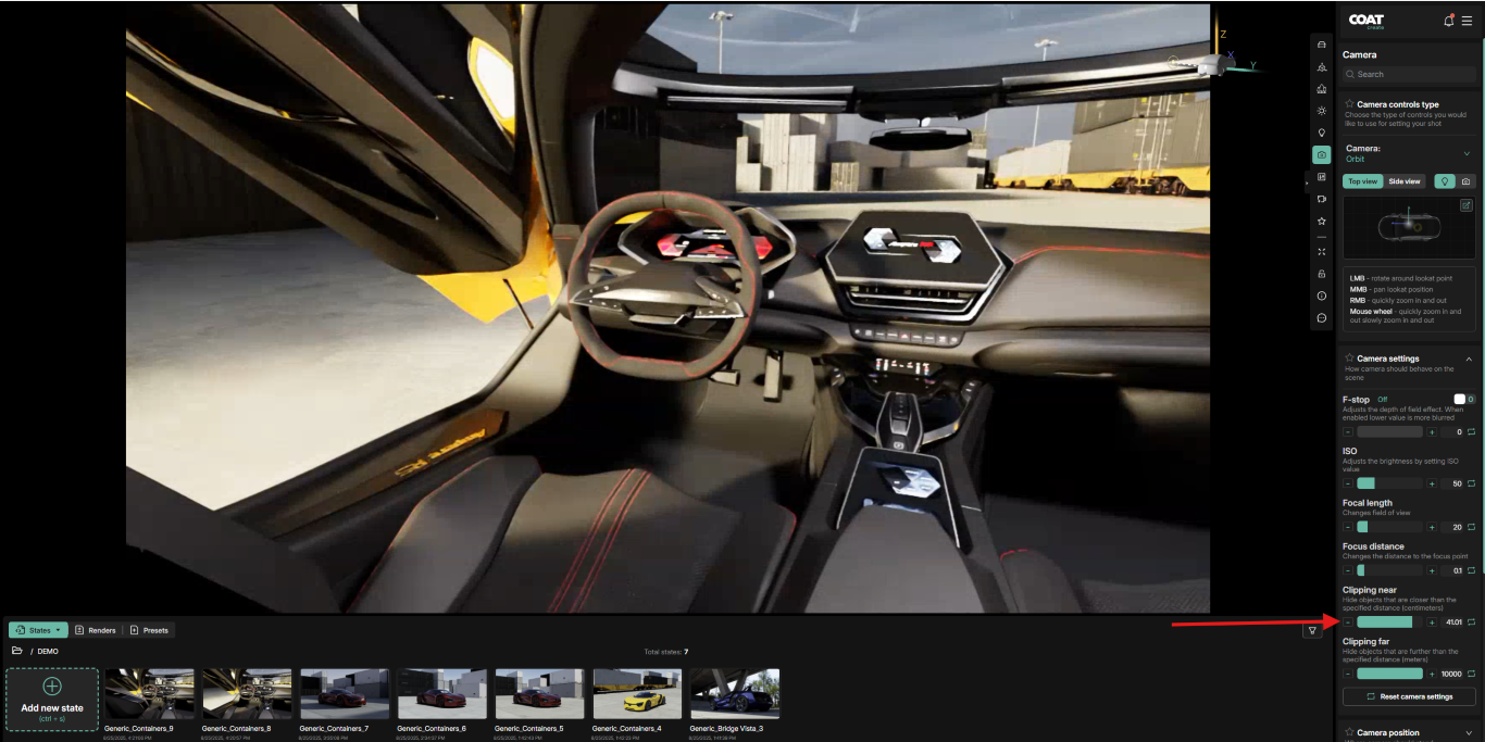 For intstance this seat back can be clipped by adjusting the Clipping near value