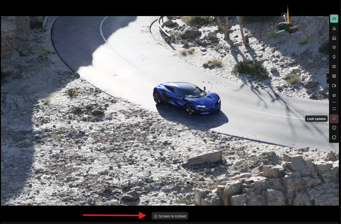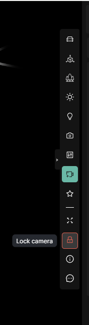 - Locks the camera so user input can not change it. Using a camera preset locks the camera automatically. Toggling the icon will unlock the camera and allow changes to camera or camera preset.