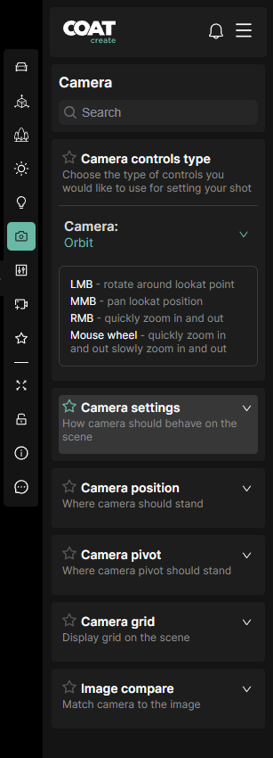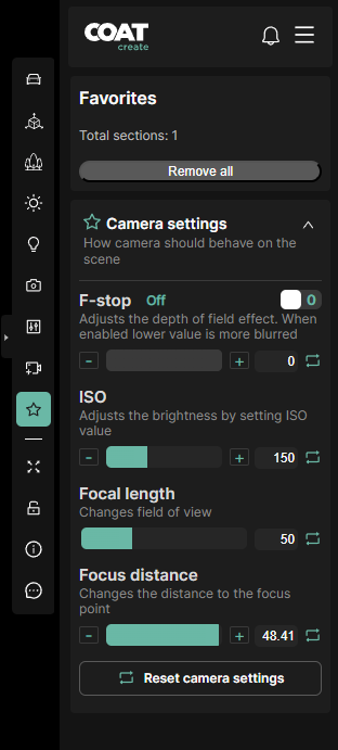 Click on the gray outlined star graphic at the beginning of it's title, it's color will change to teal indicating that it has been added to the Favorites menu. In this instance, Camera Settings has been added to Favorites