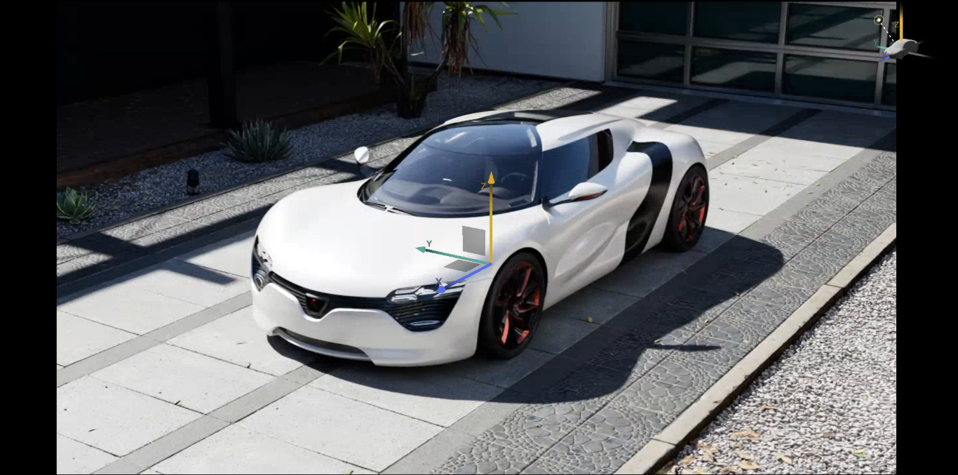 To move the vehicle along a single axis, click and drag its colored arrow in the viewport. To move it along two axes at once, click and drag the gray square between two arrows.
