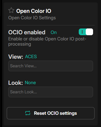OCIO enabled - Toggle on and off OCIO settings. On will be the new default moving forward. Any previous states and renders will use off to match previous working states.