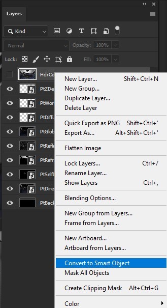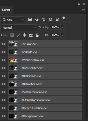 Repeat this process for the following layers: PtReflections, PtRefractions and PtSelfIllumination